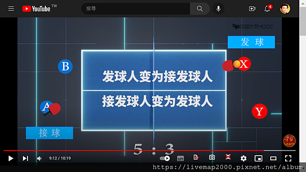 6. 決勝局,一方分數達五分時,則換變換發。 ( 發球與接發者互換!)